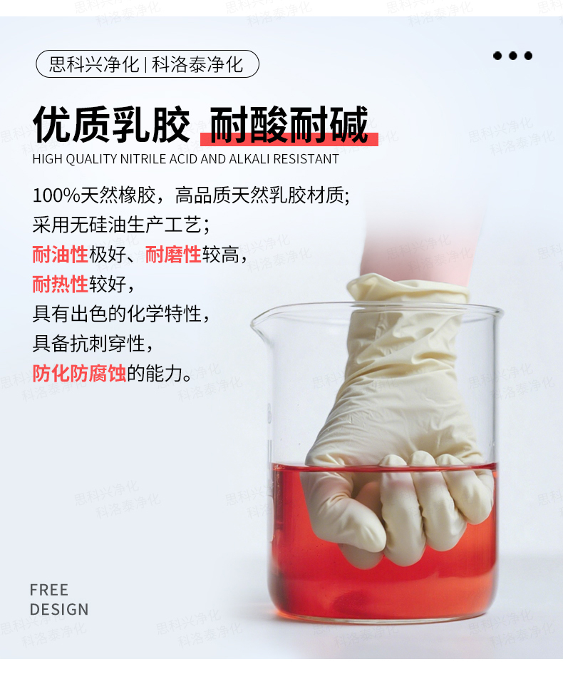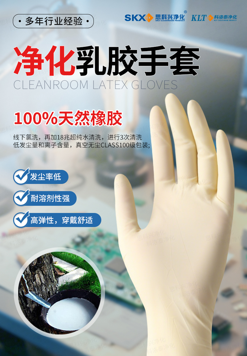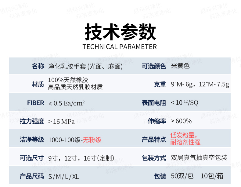 净化乳胶手套 (光面、麻面)