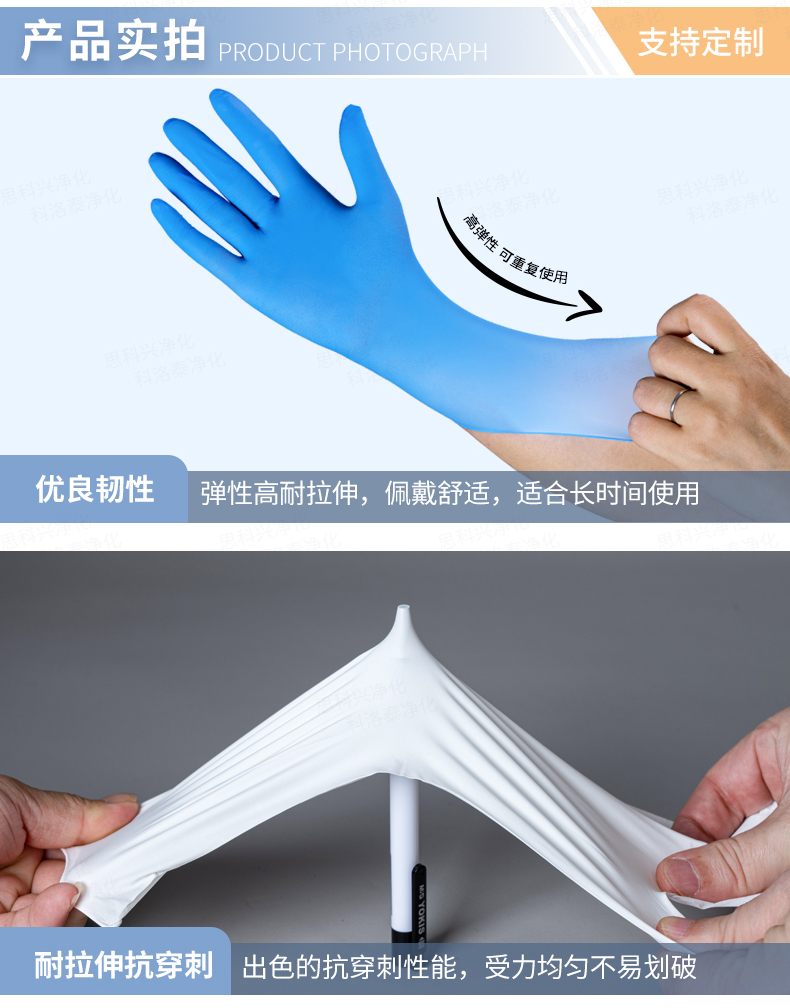 产品材质100%丁腈橡胶,主要由炳希丁和丁二烯非硫磺合成