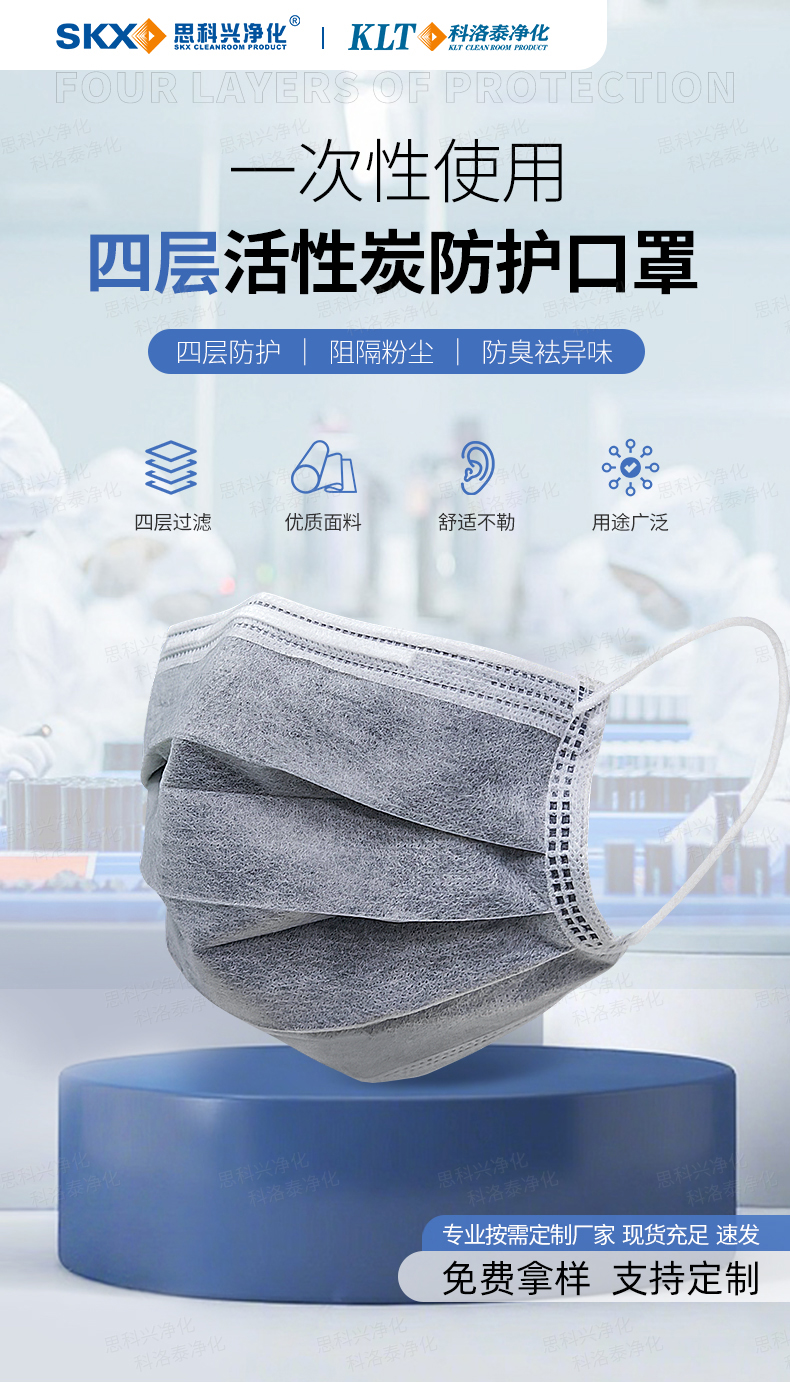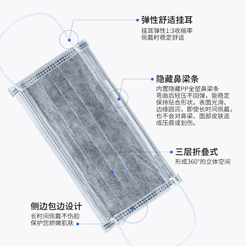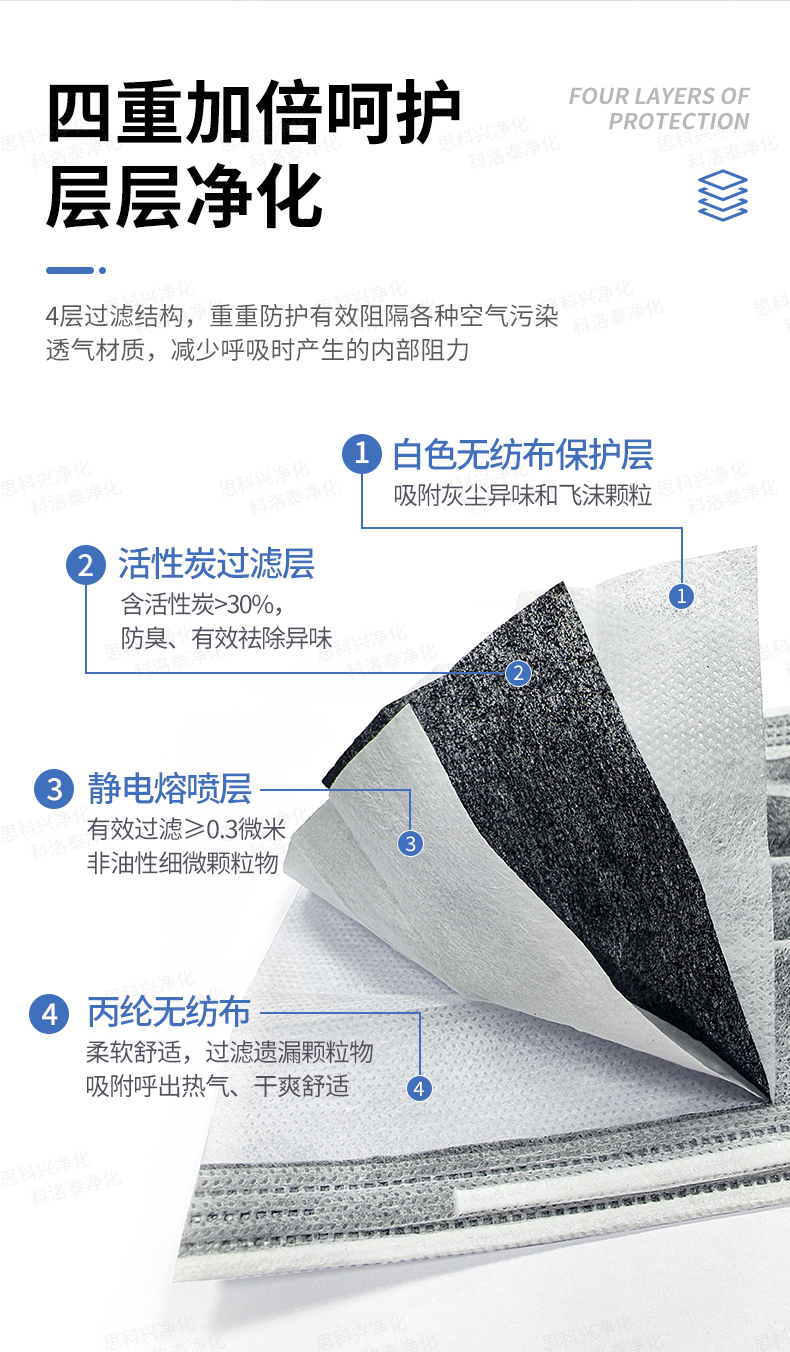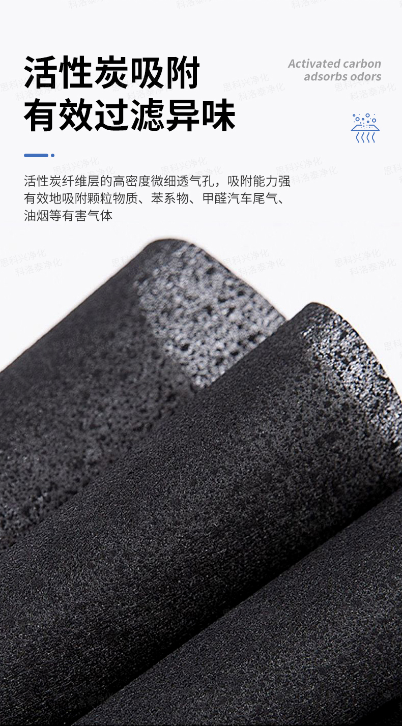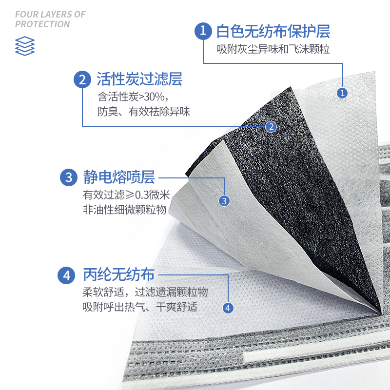 产品材质PP纺粘无纺布+PP熔喷无纺布+活性炭无纺布