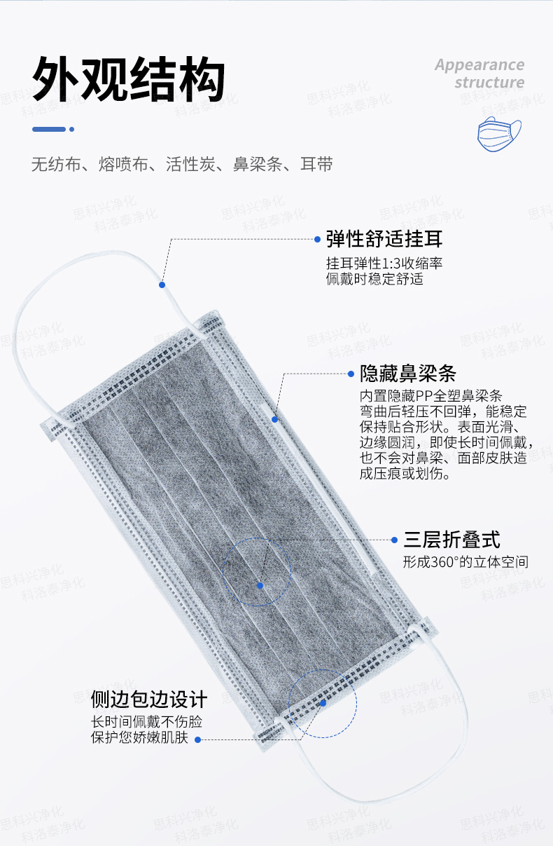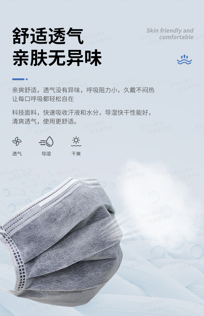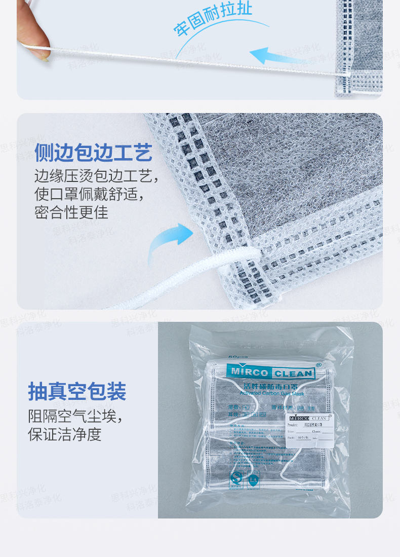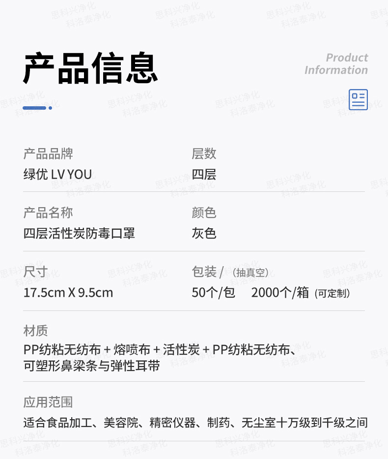 产品材质PP纺粘无纺布+PP熔喷无纺布+活性炭无纺布