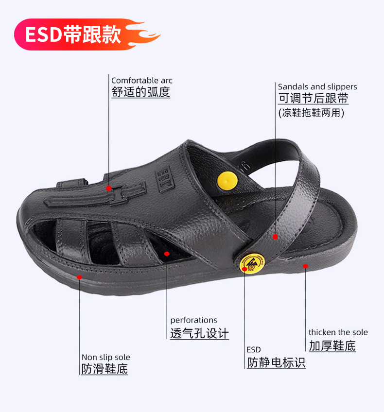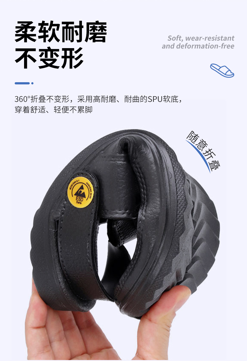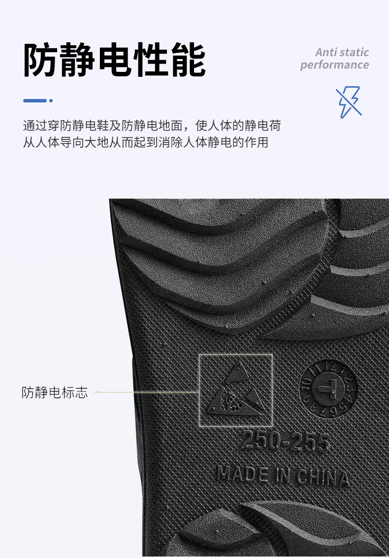 本品采用 SPU 材料制成,通过特殊工艺将人体静电荷导入大地,有效消除静电。